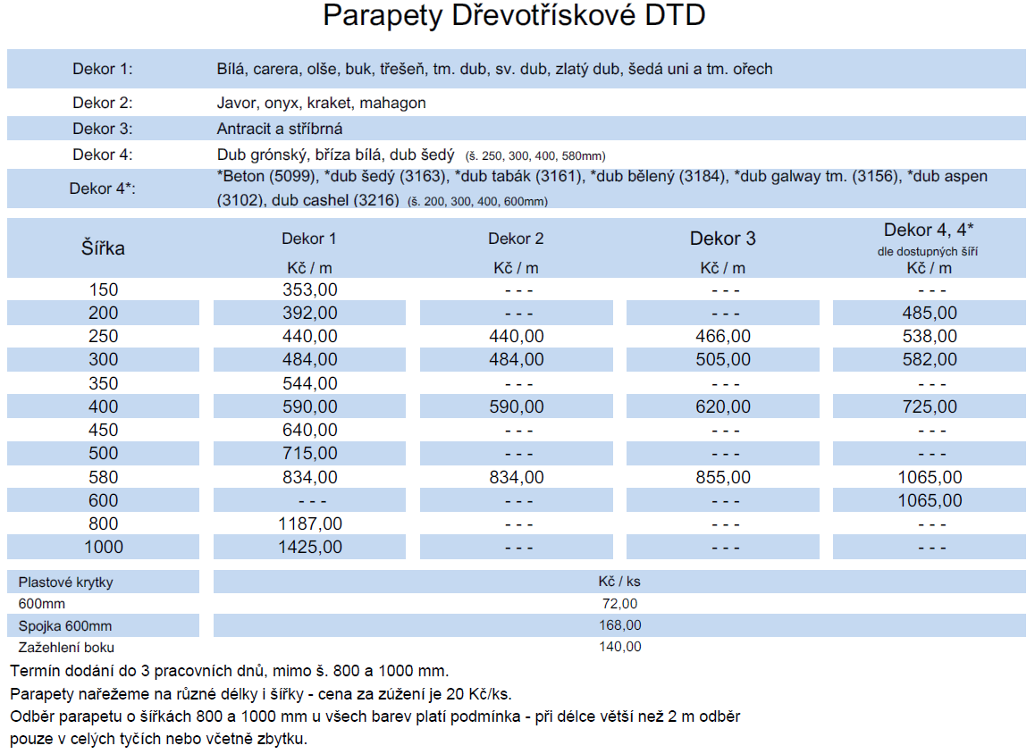 - široký výběr materiálů a barev, plastové parapety až v 60 dekorech