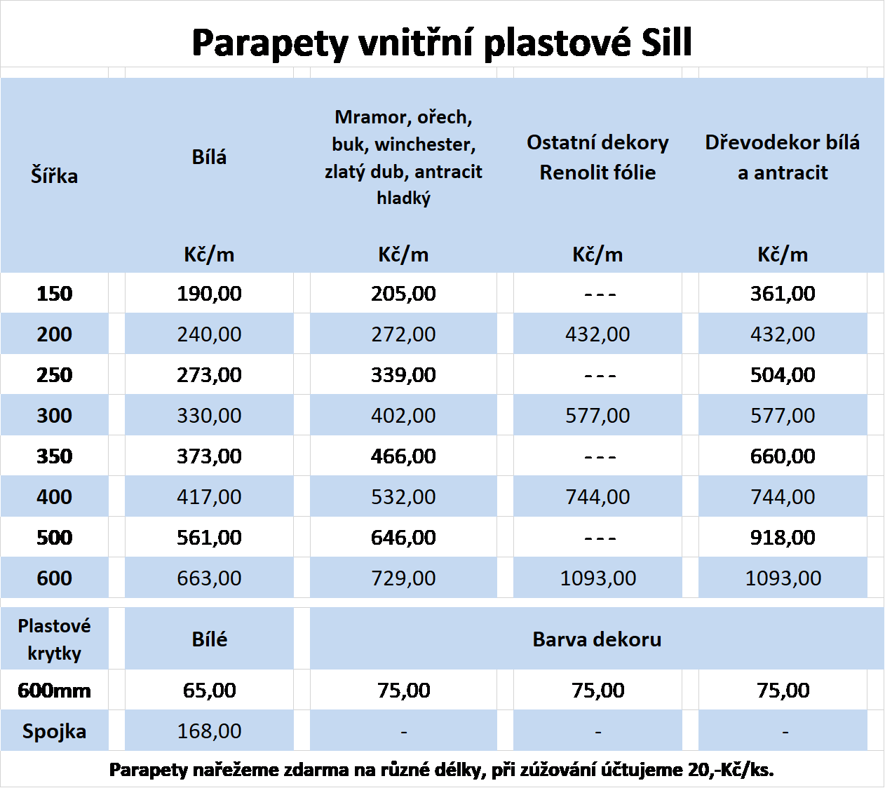 - široký výběr materiálů a barev, plastové parapety až v 60 dekorech